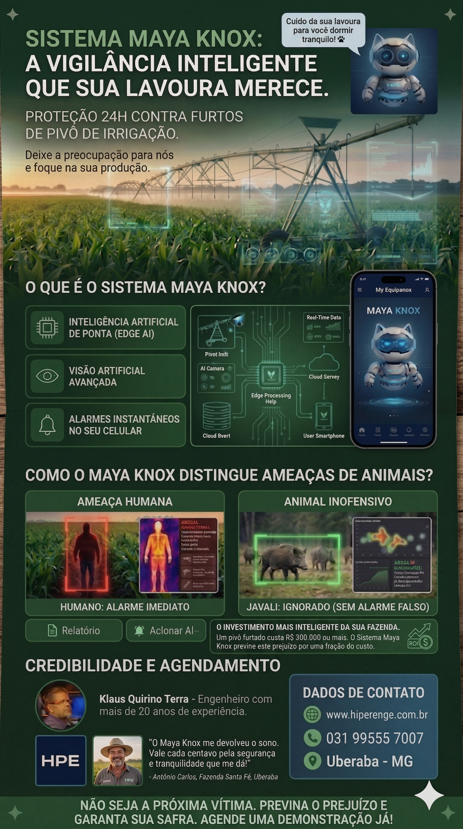 Um pivô furtado custa R$ 300.000 ou mais. O Sistema Maya Knox previne este prejuízo por uma fração irrisória do custo.